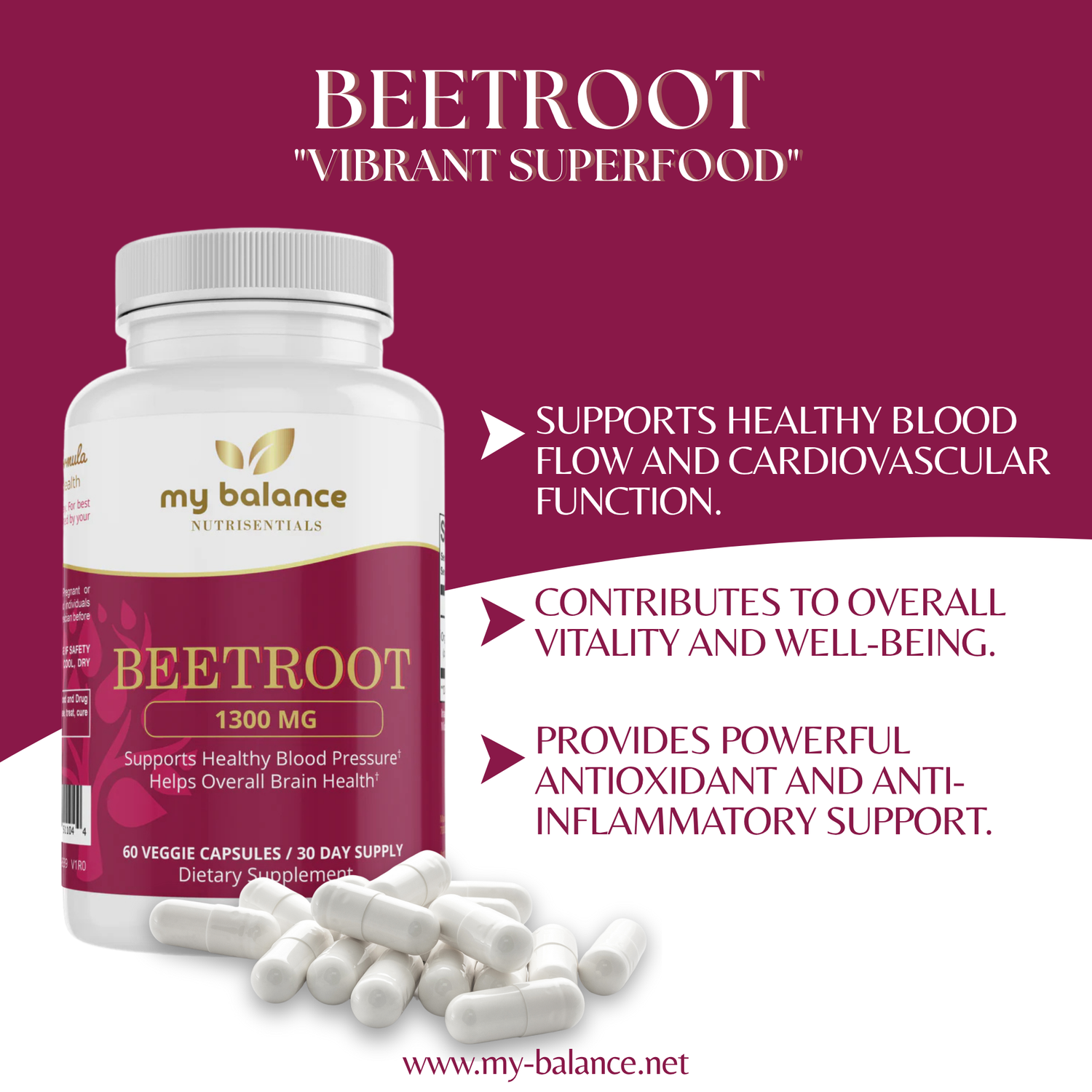 With 1300mg of nutrient-rich beetroot, this vibrant superfood supports healthy blood flow, cardiovascular function, and overall vitality while delivering powerful antioxidant and anti-inflammatory benefits.