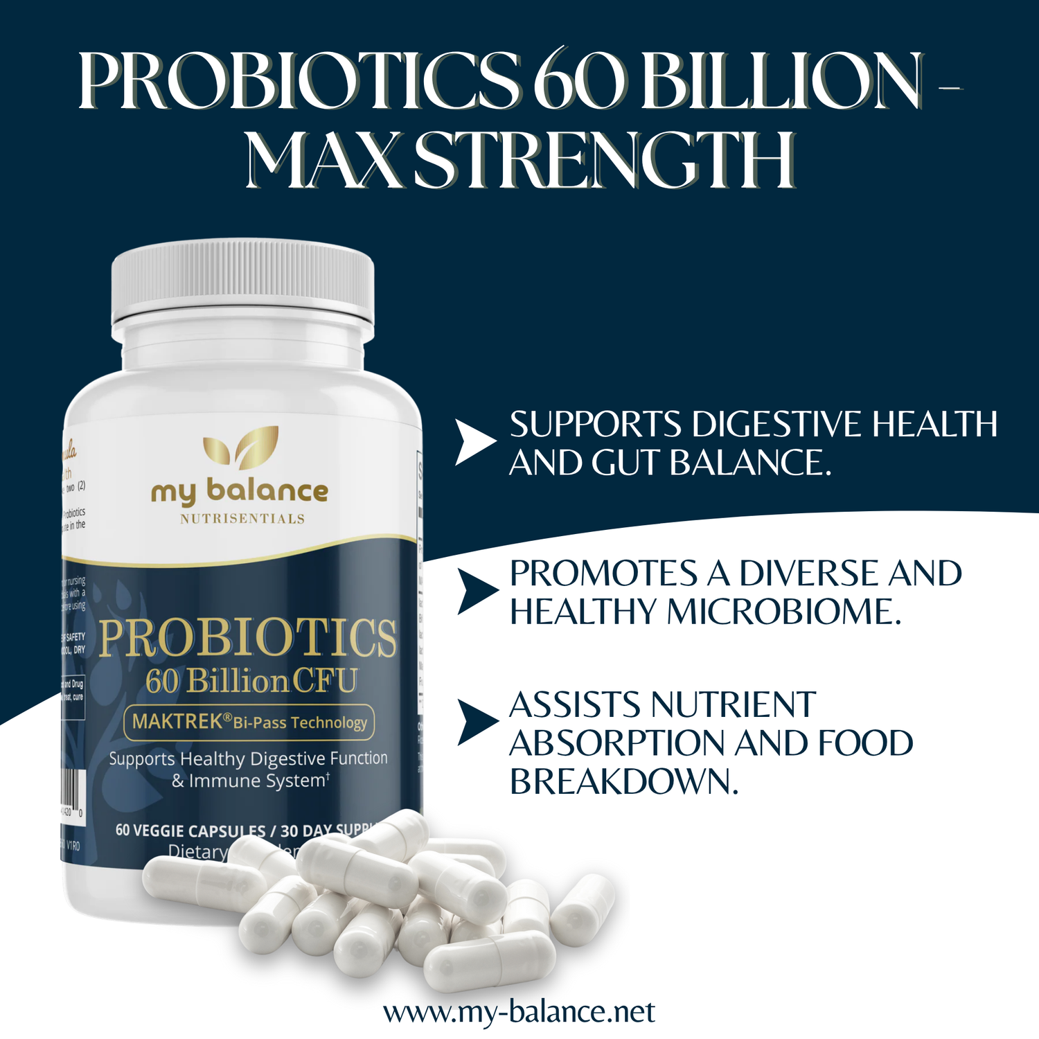 Formulated with 60 billion CFU and advanced MAKTREK® Bi-Pass Technology, this probiotic blend supports digestive health, restores gut balance, and promotes better nutrient absorption for overall wellness.