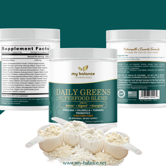 Packed with nutrient-dense superfoods like spirulina, chlorella, and turmeric, Daily Greens Superfood Blend delivers a simple way to boost your nutrition every day. With added probiotics for gut health, it helps support digestion, energy, and overall balance in one convenient scoop.